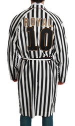 Dolce & Gabbana Black Coat Nightgown White Cotton Robe