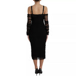Dolce & Gabbana Black Cold Shoulder Stretch Tulle Midi Dress