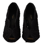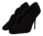 Dolce & Gabbana Black Cordonetto Ricamo Pump Open Toe Shoes