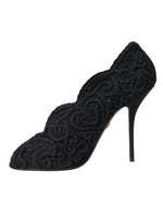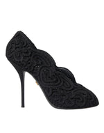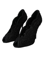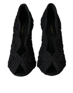 Dolce & Gabbana Black Cordonetto Ricamo Pump Open Toe Shoes