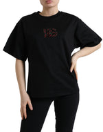 Dolce & Gabbana Black Cotton DG Crystal Crewneck Tee T-shirt