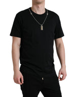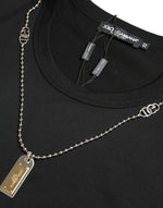 Dolce & Gabbana Black Cotton Dog Tag Round Neck T-shirt