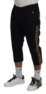 Dolce & Gabbana Black Cotton Elastic Waist DG Logo Cropped Pants