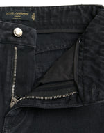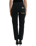 Dolce & Gabbana Black Cotton High Waist Tattered Denim Jeans