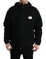 Dolce & Gabbana Black Cotton Hooded Logo Bomber Jacket