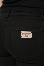 Dolce & Gabbana Black Cotton Logo Mid Waist Skinny Denim Jeans