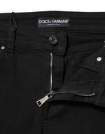 Dolce & Gabbana Black Cotton Logo Skinny Mid Waist Denim Jeans