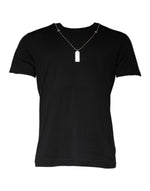 Dolce & Gabbana Black Cotton Necklace Embellished T-shirt