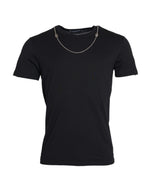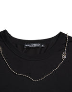 Dolce & Gabbana Black Cotton Silver Chain Short Sleeve T-shirt