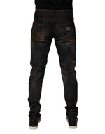 Dolce & Gabbana Black Cotton Skinny Tattered Men Denim Jeans