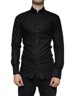Dolce & Gabbana Black Cotton Stretch Dress GOLD Formal Shirt