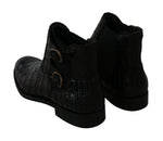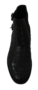 Dolce & Gabbana Black Crocodile Leather Derby Boots Shoes