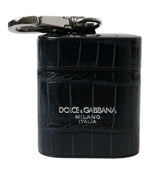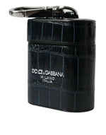 Dolce & Gabbana Black Crocodile Leather Silver Metal Logo Airpods Case