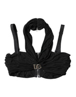Dolce & Gabbana Black Cropped Viscose Halter Bustier Top
