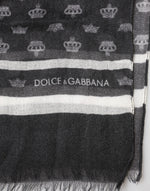 Dolce & Gabbana Black Crown Cashmere Neck Wrap Shawl Scarf