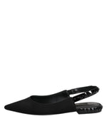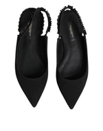 Dolce & Gabbana Black Crystal Charmeuse Slingback Shoes