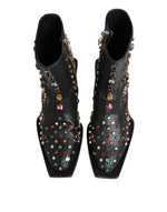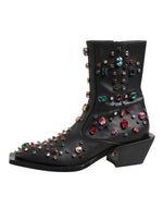Dolce & Gabbana Black Crystal Cowboy Leather Men Boots Shoes