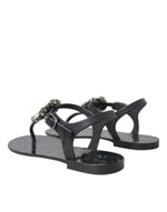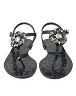 Dolce & Gabbana Black Crystal Flats Sandals Flip Flops Shoes