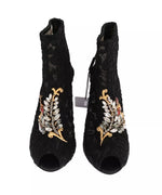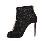 Dolce & Gabbana Black Crystal Lace Booties Stilettos Shoes