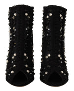 Dolce & Gabbana Black Crystals Heels Zipper Short Boots Shoes