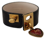 Dolce & Gabbana Black Dauphine Leather DG Heart Key Ring Bracelet