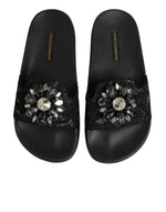 Gorgeous brand new, 100% Authentic Dolce & Gabbana slides combine comfort with sparkling elegance. Crafted in sleek black rubber, they feature dazzling crystal embellishments across the strap, showcasing the brand’s signature glamour. Perfect for poolside lounging or casual outings, these sandals bring luxury style to your everyday beachwear look.