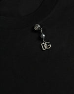 Dolce & Gabbana Black Embellished Cotton Crew Neck T-shirt