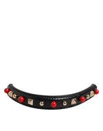 Dolce & Gabbana Black Embellished Leather Bag Handle Women Shoulder Strap