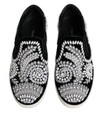 Dolce & Gabbana Black Embellished London Men Slip On Shoes