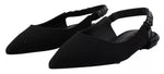 Dolce & Gabbana Black Flats Crystal Slingback Charmeuse Shoes