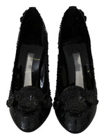 Dolce & Gabbana Black Floral Crystal CINDERELLA Heels Shoes