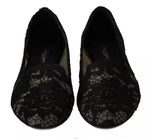 Dolce & Gabbana Black Floral Lace Loafers Flats Shoes