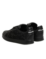 Dolce & Gabbana Black Floral Lace Low Top Sneaker Shoes