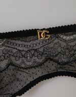Dolce & Gabbana Black Floral Lace Nylon Strap Garter Underwear