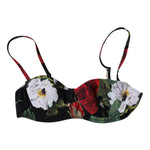 Dolce & Gabbana Black Floral Print Nylon Balconcino Bra Underwear