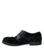 Dolce & Gabbana Black Fur Leather Lace Up Derby Dress Shoes