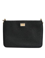 Dolce & Gabbana Black Grain Leather Logo Plaque Clutch Bag