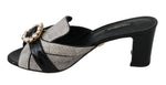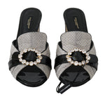 Dolce & Gabbana Black Gray Exotic Leather Crystals Sandals Shoes