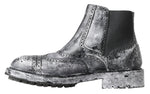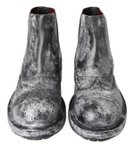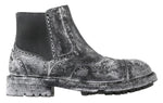 Dolce & Gabbana Black Gray Leather Ankle Boots