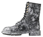 Dolce & Gabbana Black Gray Leather Mid Calf Boots Shoes
