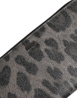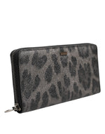 Dolce & Gabbana Black Gray Leopard Leather Zip Around Continental Wallet