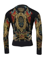 Dolce & Gabbana Black Heraldic DG Silk Round Neck Pullover Sweater