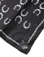 Dolce & Gabbana Black Horseshoe Silk Square Handkerchief Scarf