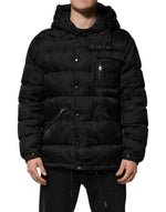 Dolce & Gabbana Black Jacquard Quilted Puffer Hooded Jacket