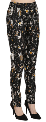 Dolce & Gabbana Black Jazz Club Print High Waist Tapered Pants