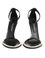 Dolce & Gabbana Black KEIRA Pearl Embellished Sandals Shoes