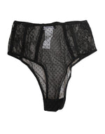 Dolce & Gabbana Black Lace Polka Dot Mesh High Waist Underwear