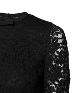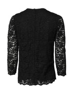Dolce & Gabbana Black Lace STAFF Crew Neck Long Sleeves Top