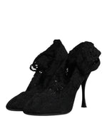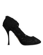 Dolce & Gabbana Black Lace Stretch Heels Mid Calf Boots Shoes