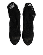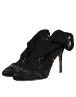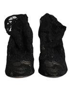 Dolce & Gabbana Black Lace Stretch Heels Mid Calf Boots Shoes